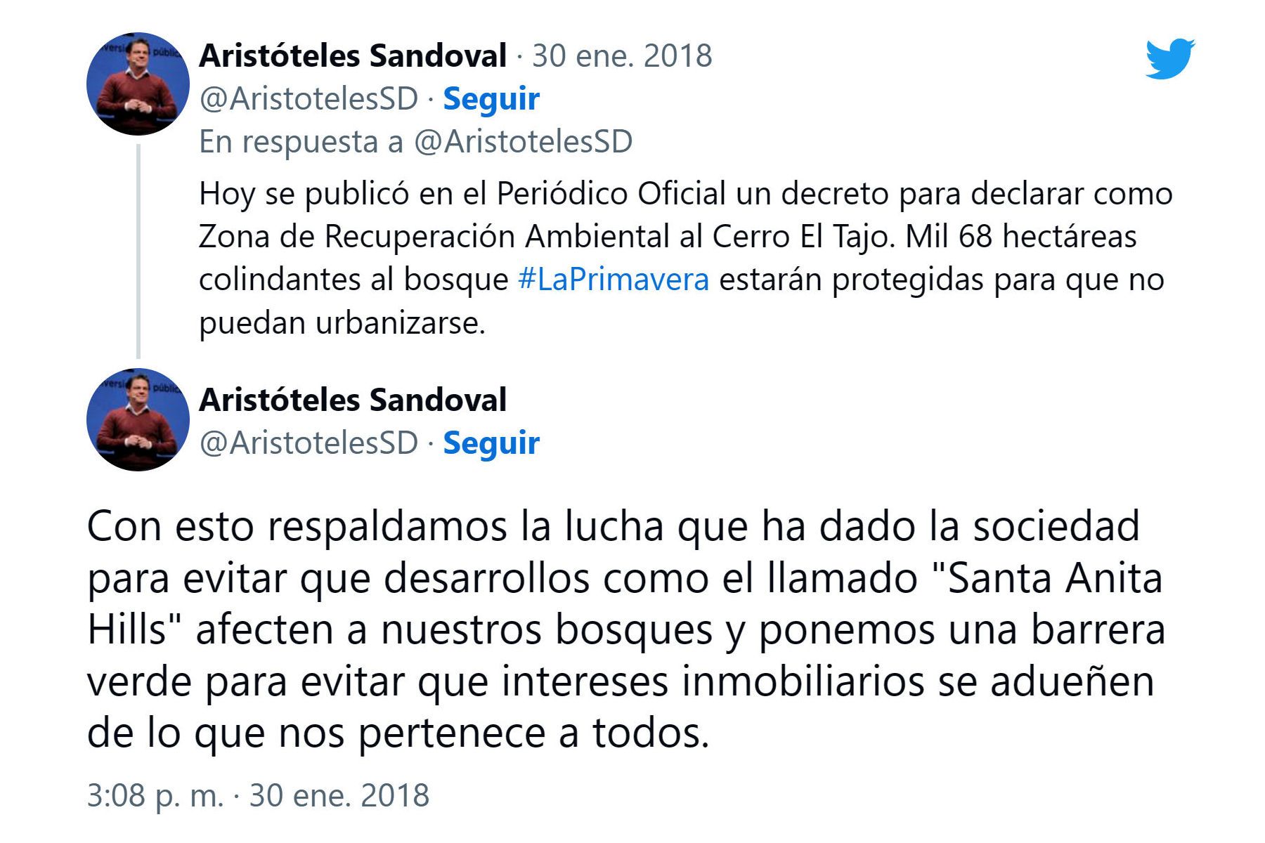 En enero de 2018, los tribunales fallan a favor del fraccionamiento y los trabajos se reanudan, pero el cabildeo de Tania logra que el entonces Gobernador Aristóteles Sandoval emita un Decreto que protege más de mil 600 hectáreas del bosque, entre ellas, donde se proyectaba Santa Anita Hills.